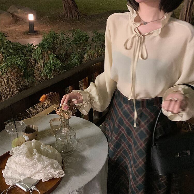 チェック柄 スカート ハイウエスト 傘スカート 中・長セクション