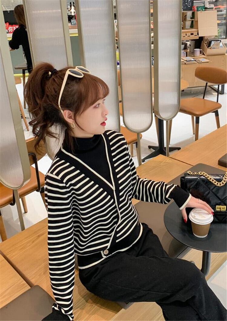 美少女すぎる!通勤する 2021 新品 ボーダー 縫付 長袖 Vネック ハイネック ニットトップス スリム 百掛け