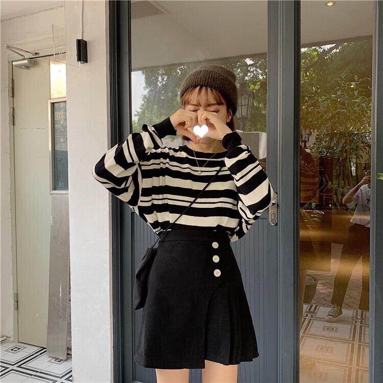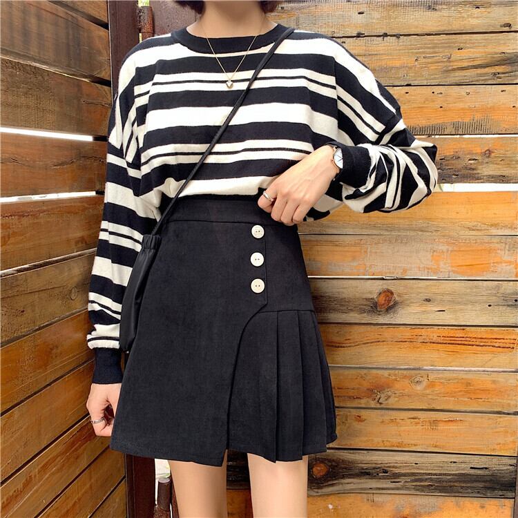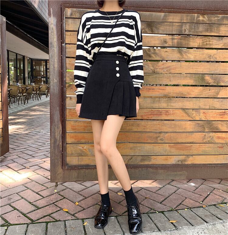 韓国ファッション イレギュラー ハイウエスト Aライン ギャザリング