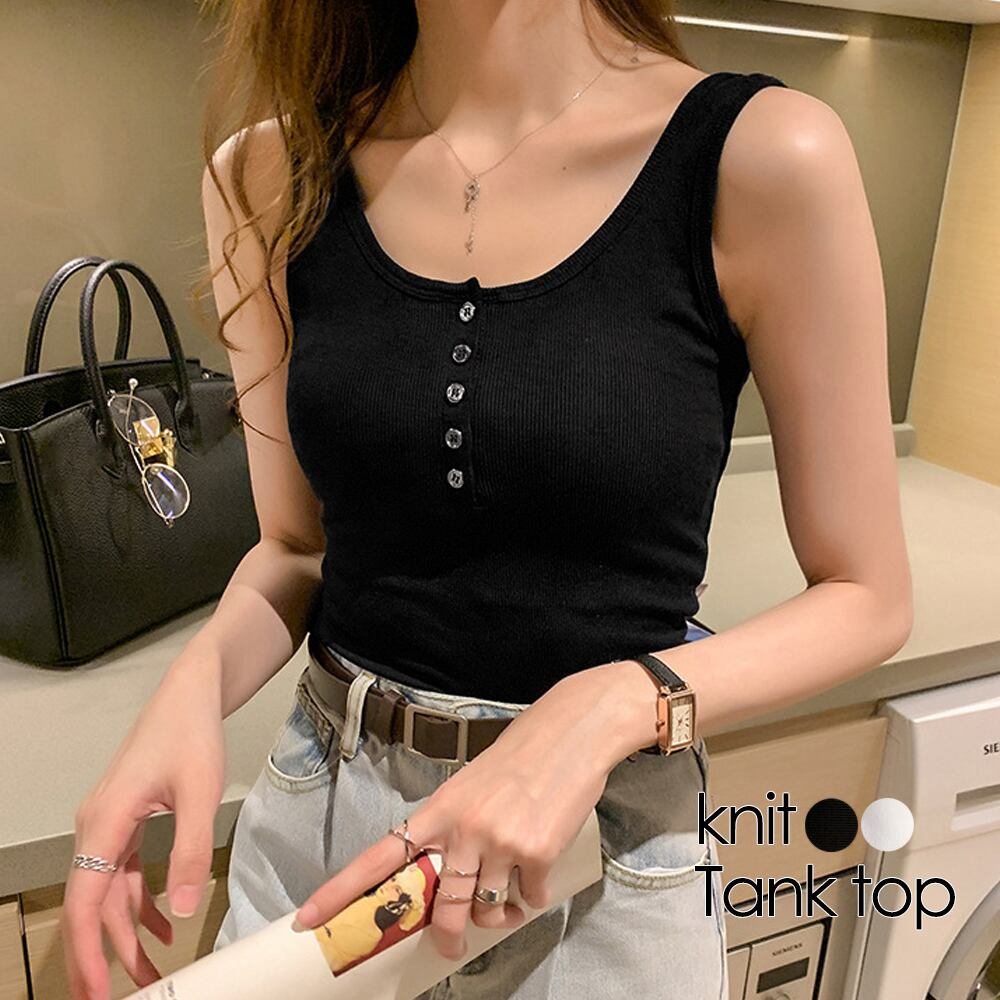 ニット夏服きれいめ/インナートップス/着やせ リブタンク