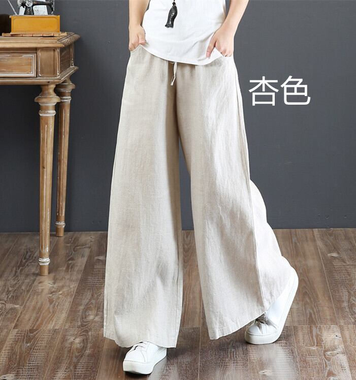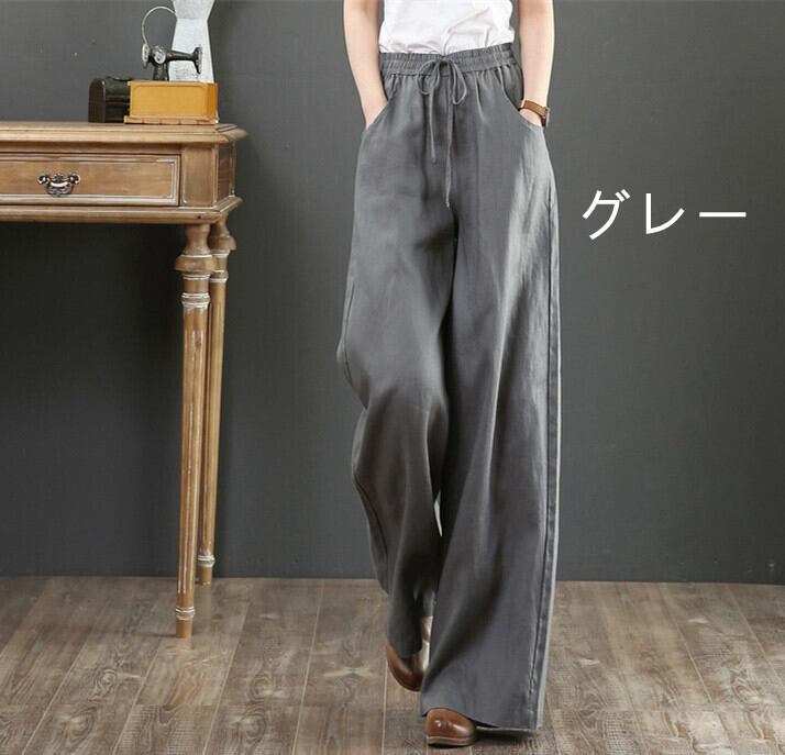 無地 ガウチョパンツ イウエスト リボン 綿麻 ボトムス 麻混 ゆったり 春夏人気パンツ ポケット付き 着痩せ