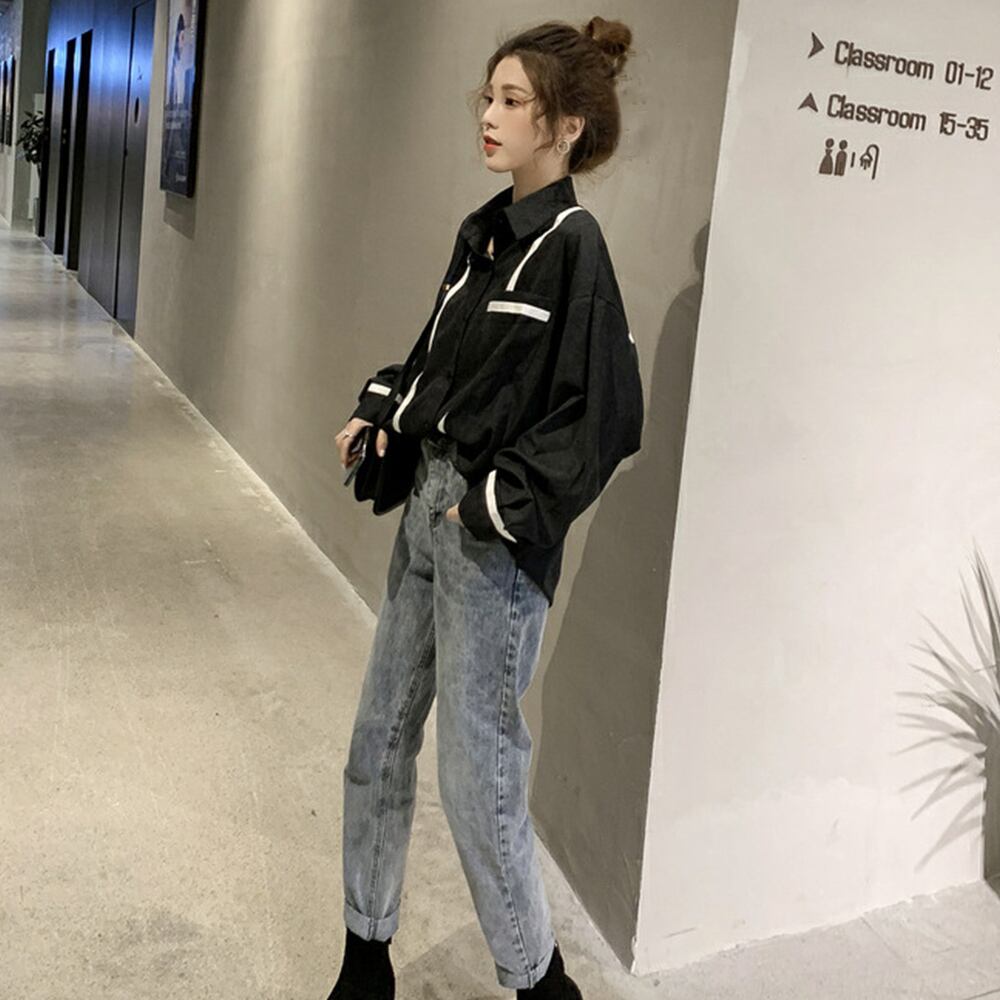 カジュアルシャツ春/前開きトップス女性/羽織細見え 韓国風