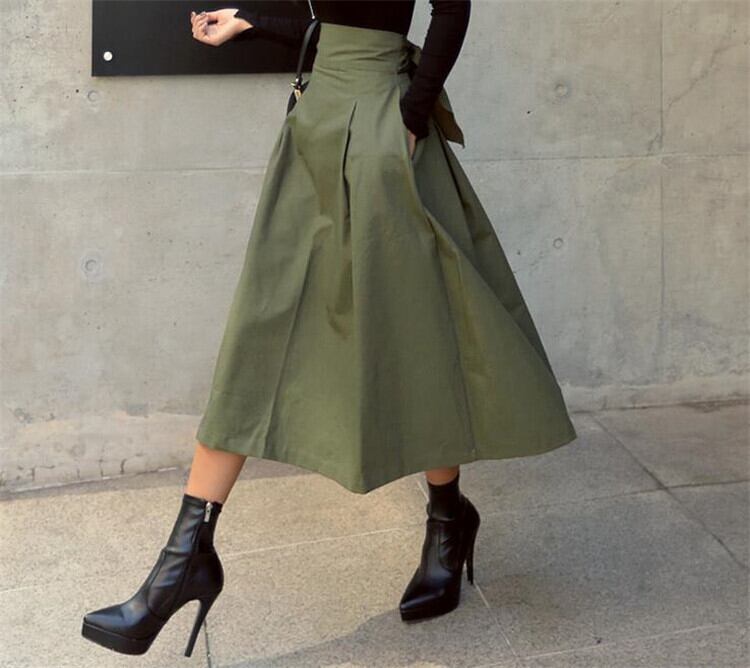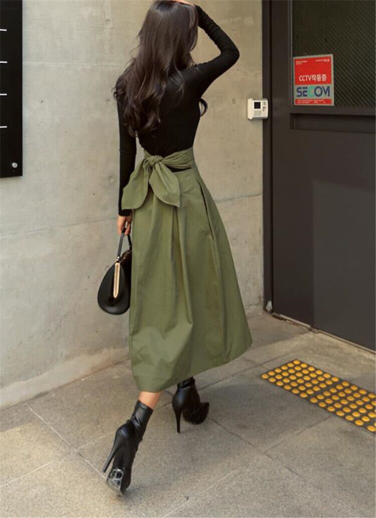 傘スカート 蝶結び ヤングスタイル スカート 2021年春秋 Aライン 大きい裾 スリム
