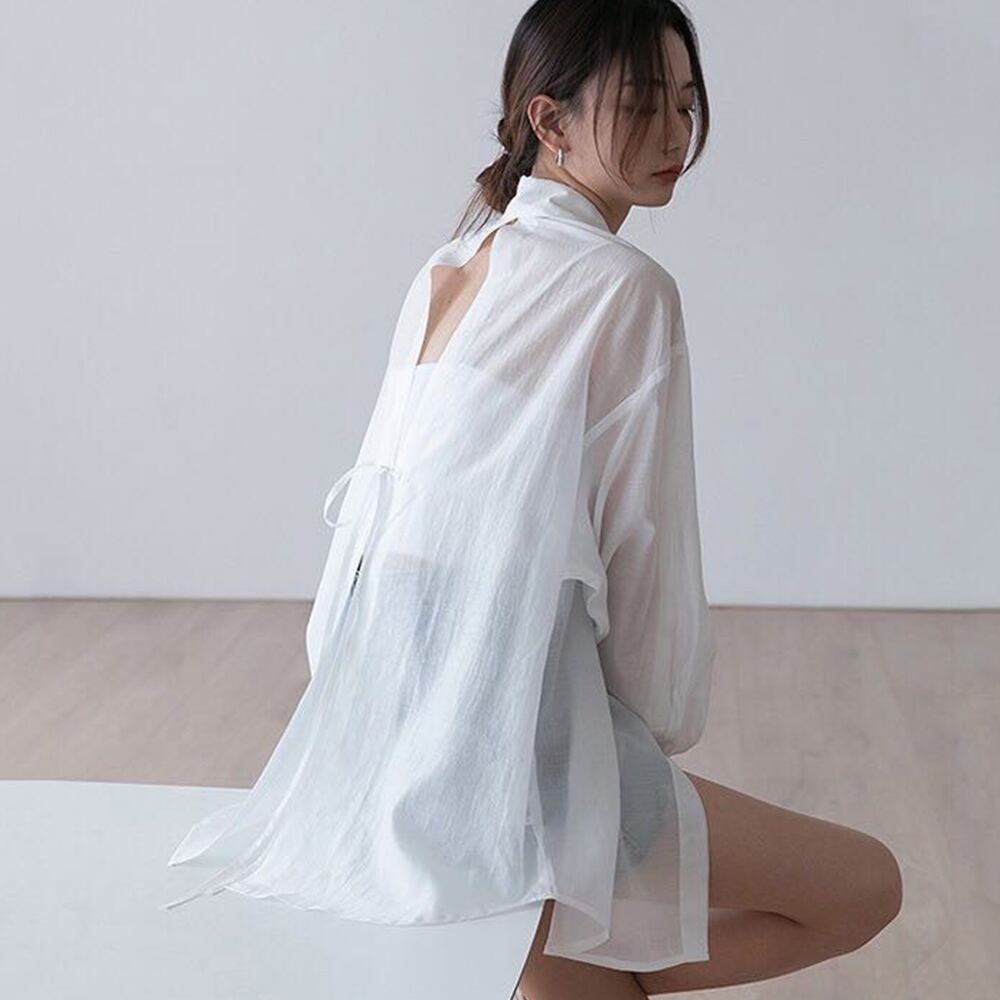 バックリボンシャツ/ゆったり ブラウス/おしゃれ トップス