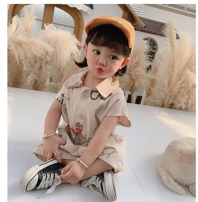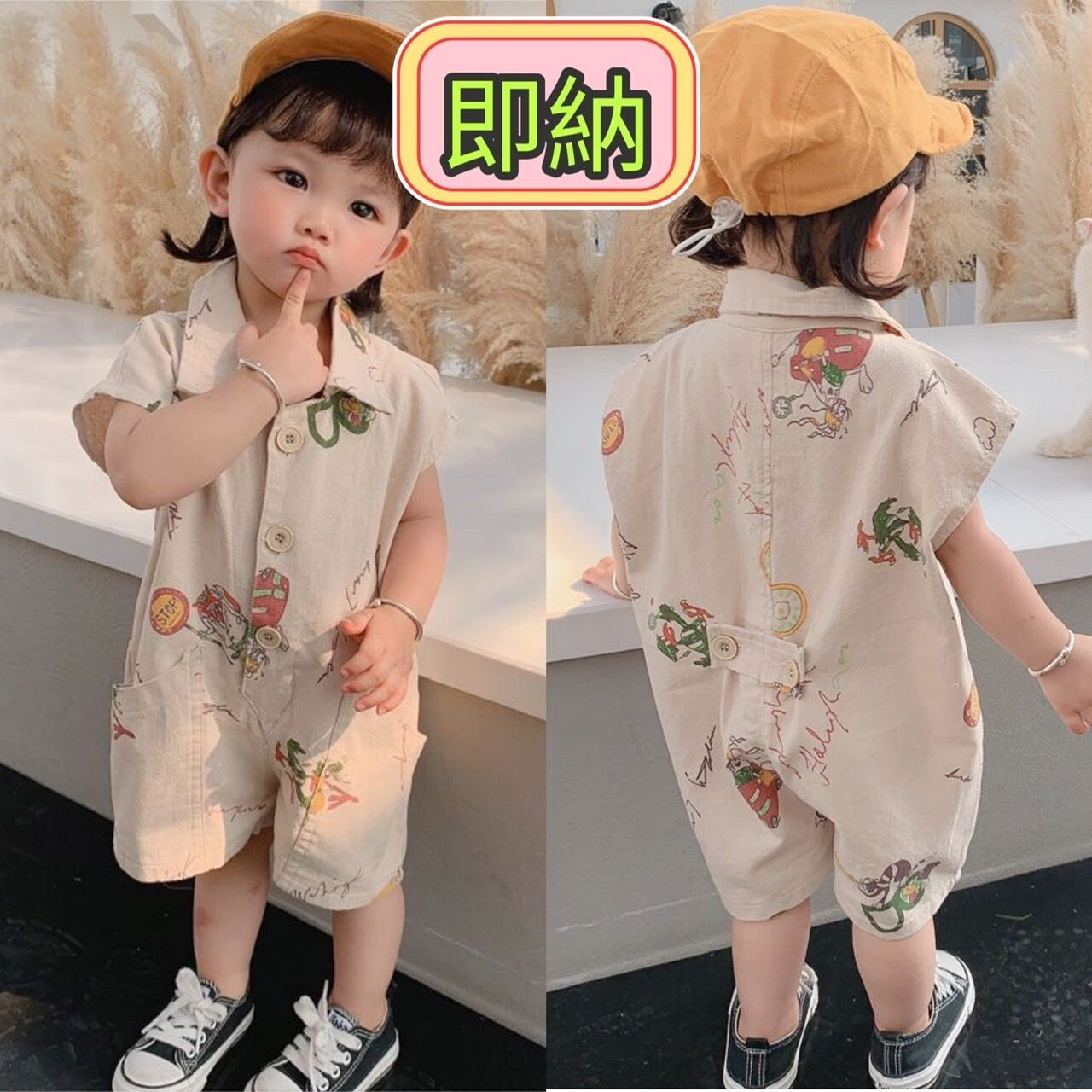 とってもお洒落なオールインワンタイプのロンパースです 股の部分はボタンになっているので、トイレ時もスムーズにできます。