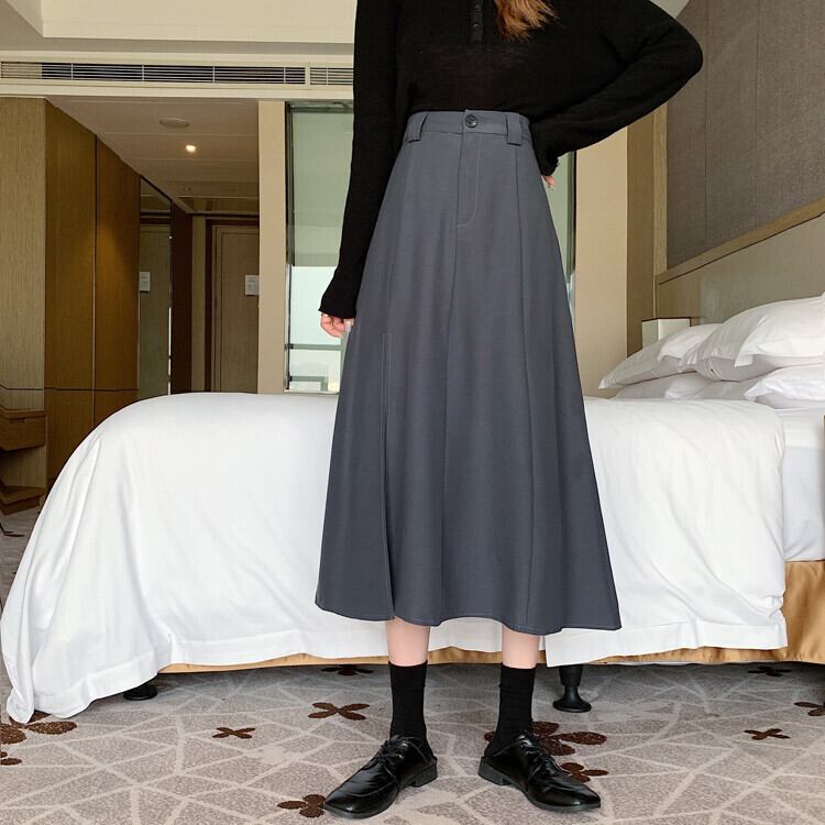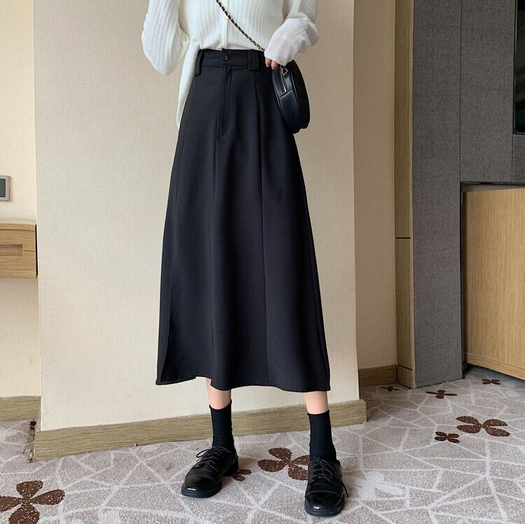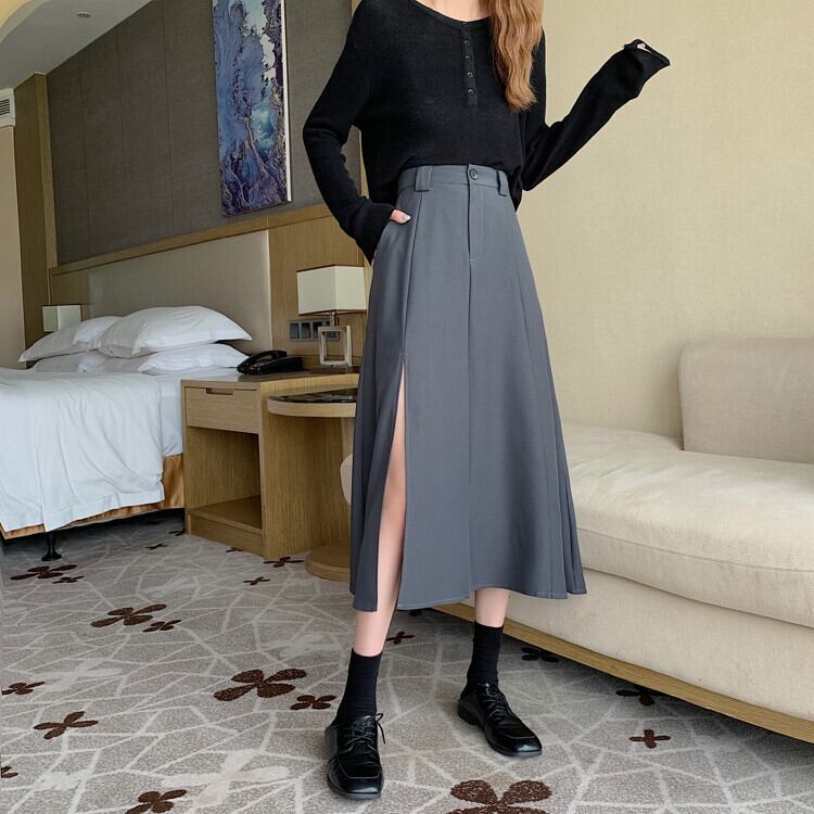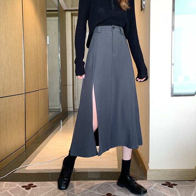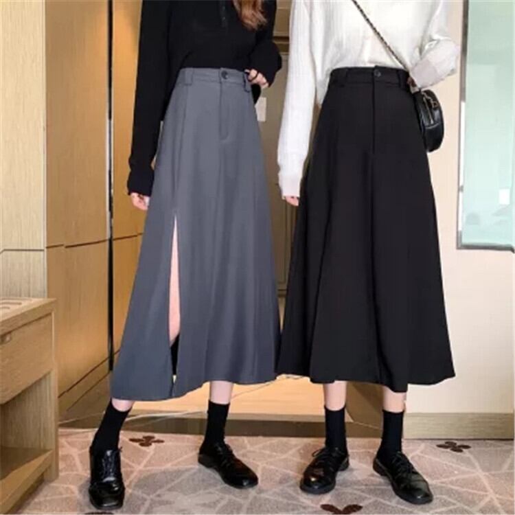 スプリット 中・長セクション スカート 通勤する 百掛け ハイウエスト Aライン 無地 ロングスカート