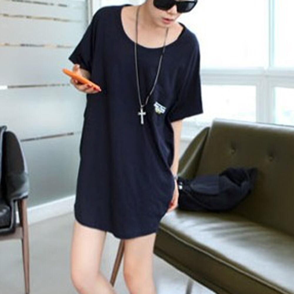 一枚でワンピースやチュニック風にシンプルに着こなる半袖チュニックロンT