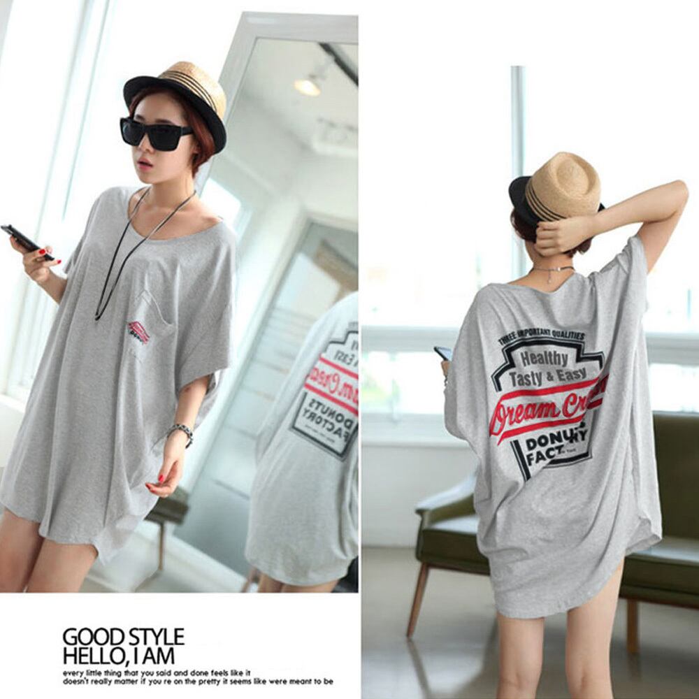ロンティー 黒白/英字柄トップス/tシャツワンピ 夏