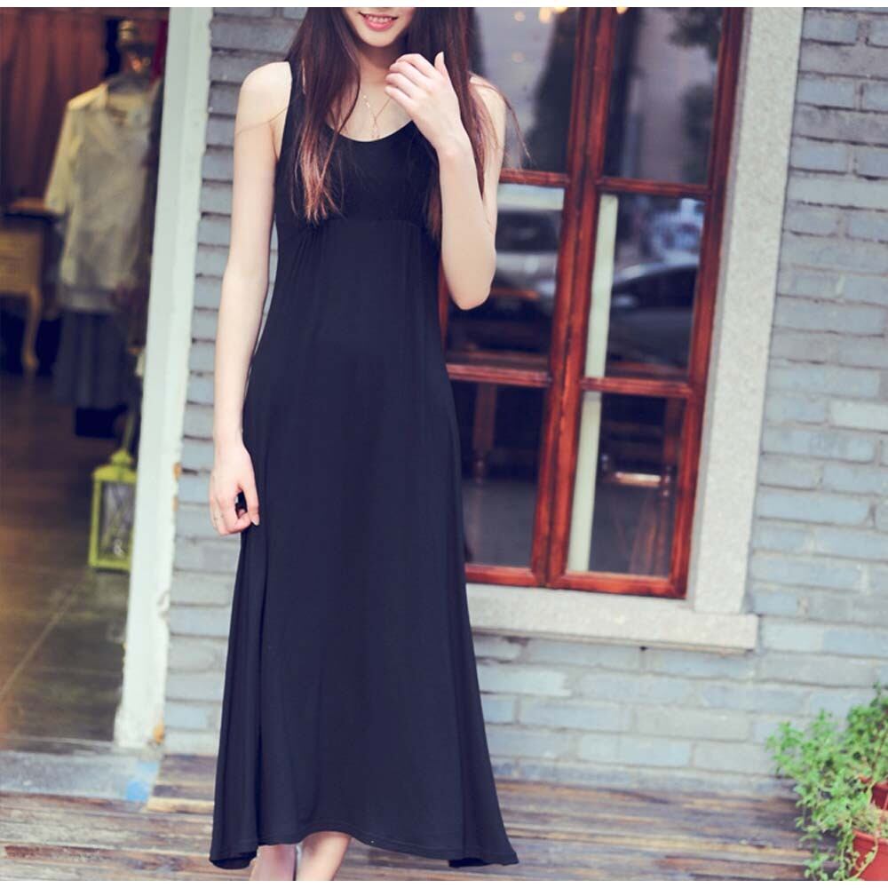 吸水性の良い柔らかいモーダル生地で仕上げた上質な肌触りのマキシ丈キャミワンピース