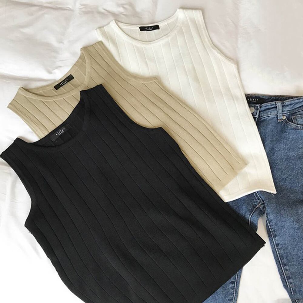 肌触りがよく、柔らかい薄手のリブニット素材のベーシックタンクトップ