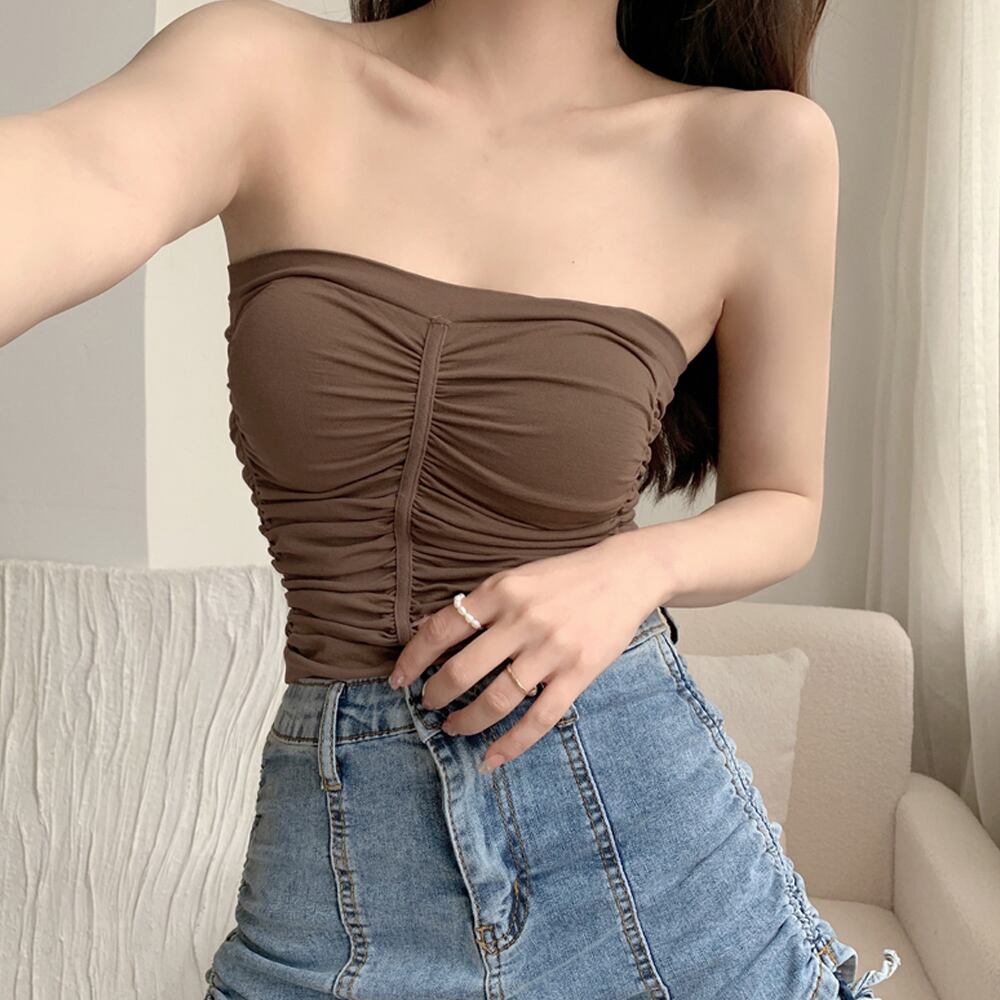 無地チューブトップ/フィットベアトップ/肩出しトップス春夏
