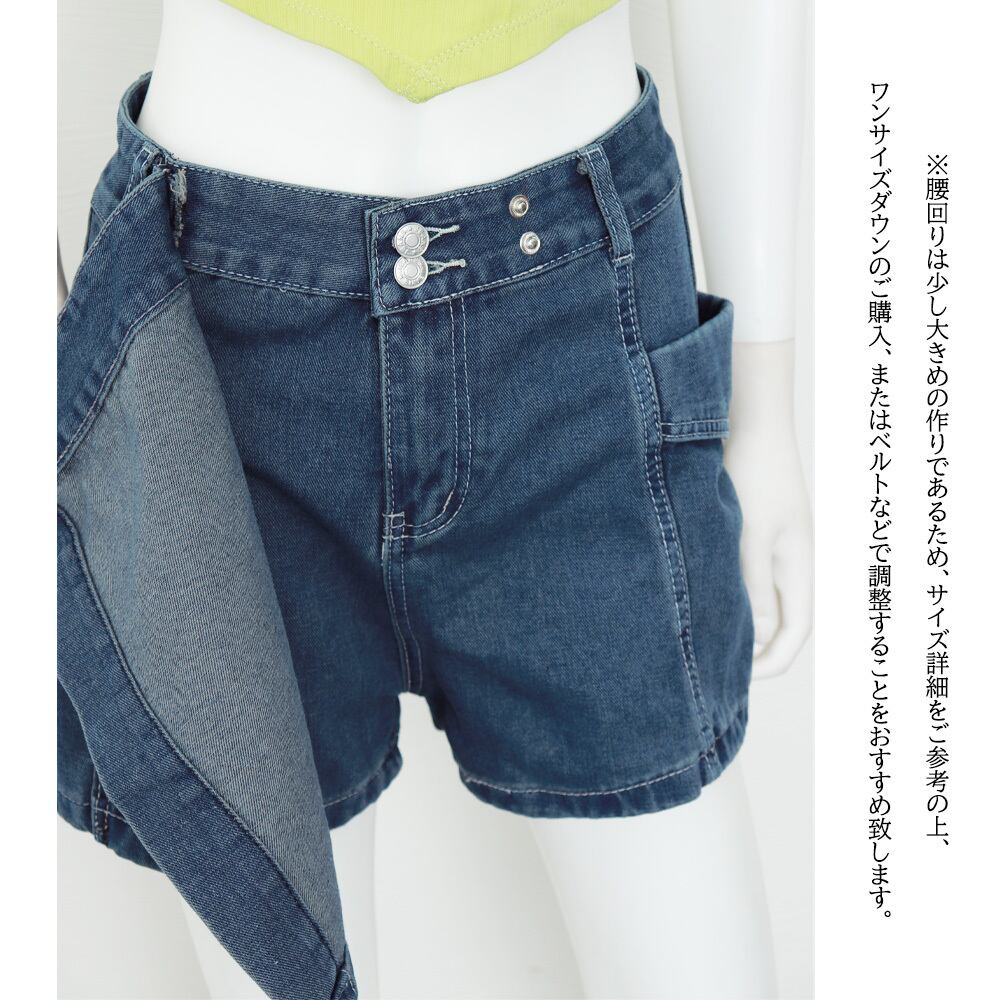ミニスカートのデザインですが、後ろから見るとショートパンツのデニムパンツ
