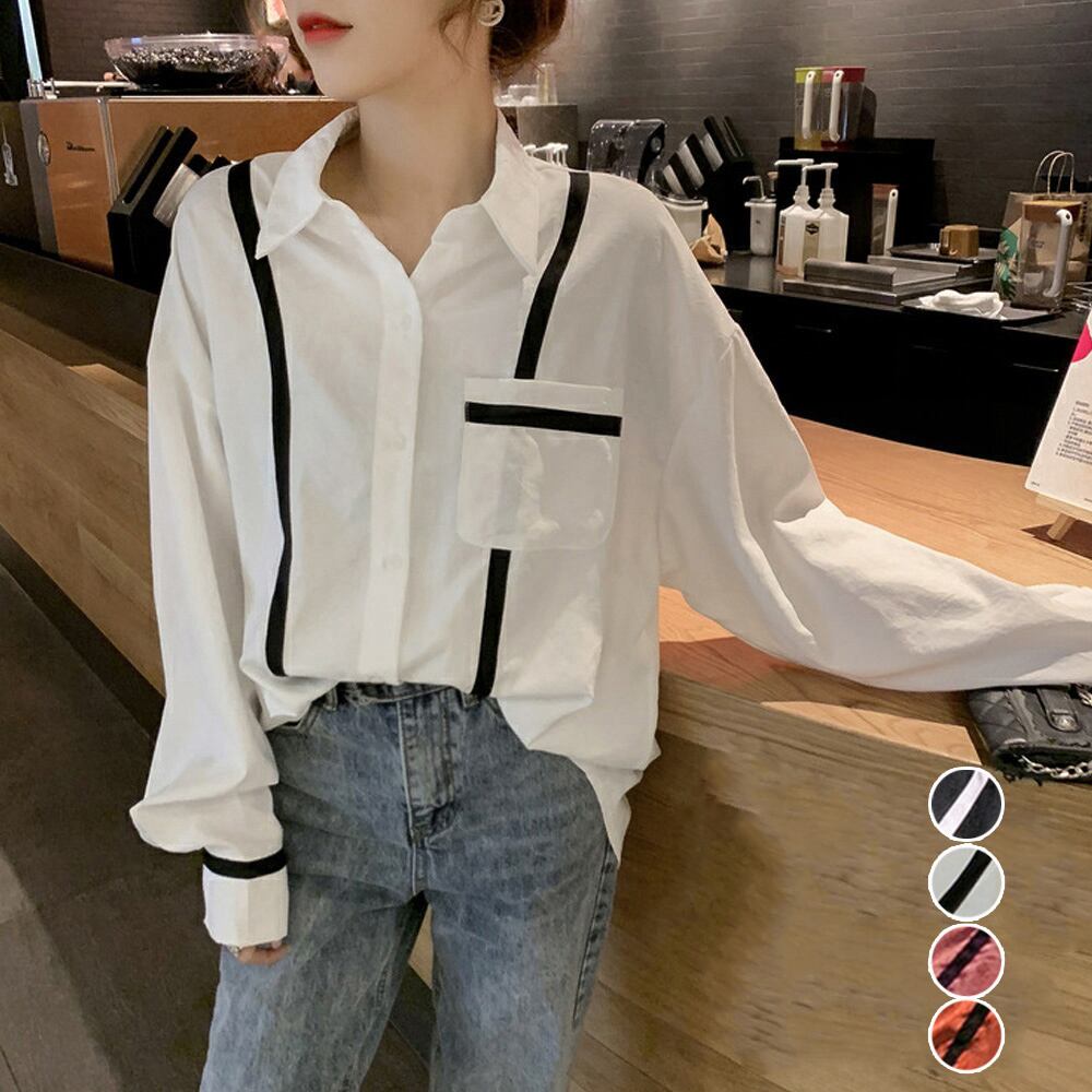 ライン入りでユニークなシャツブラウス