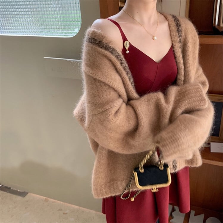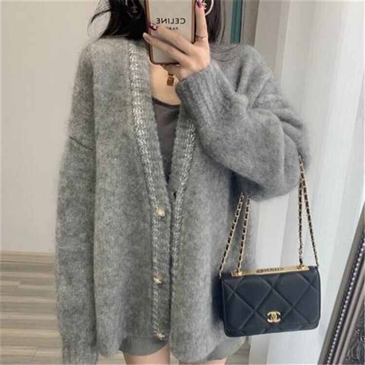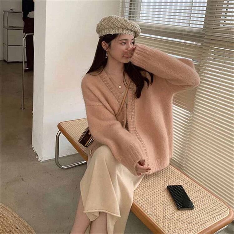 穏やかな風 肩を落とした ニット セーター カーディガン コート 女性