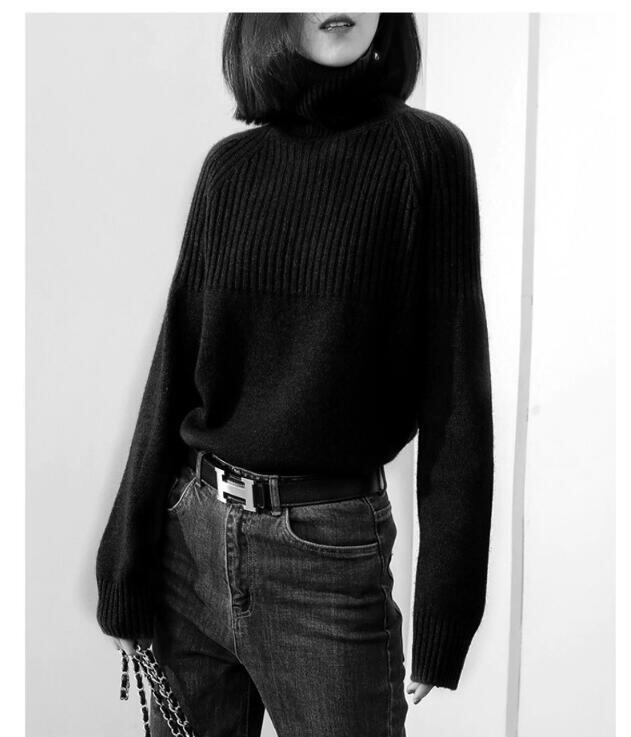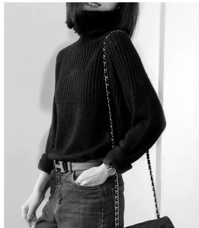 人気商品厚手のハイネックニット服セーター女性ルーズレイジーウールセーター/ハイカラー大サイズ無地