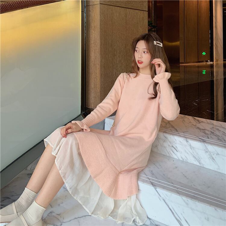 秋冬新作ワンピース レディース トップス ワンピース 可愛い 体型カバーニット