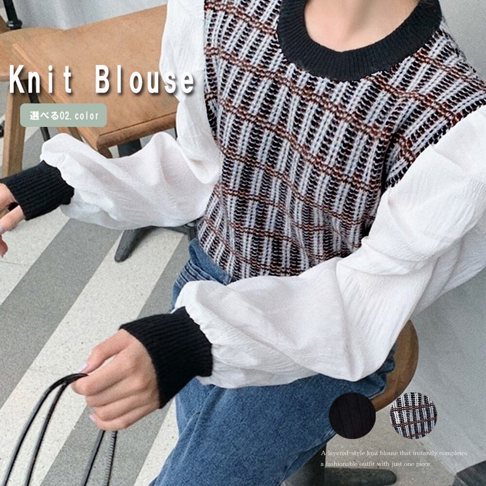 一枚でお洒落コーデが即完成のレイヤード風ニットブラウス