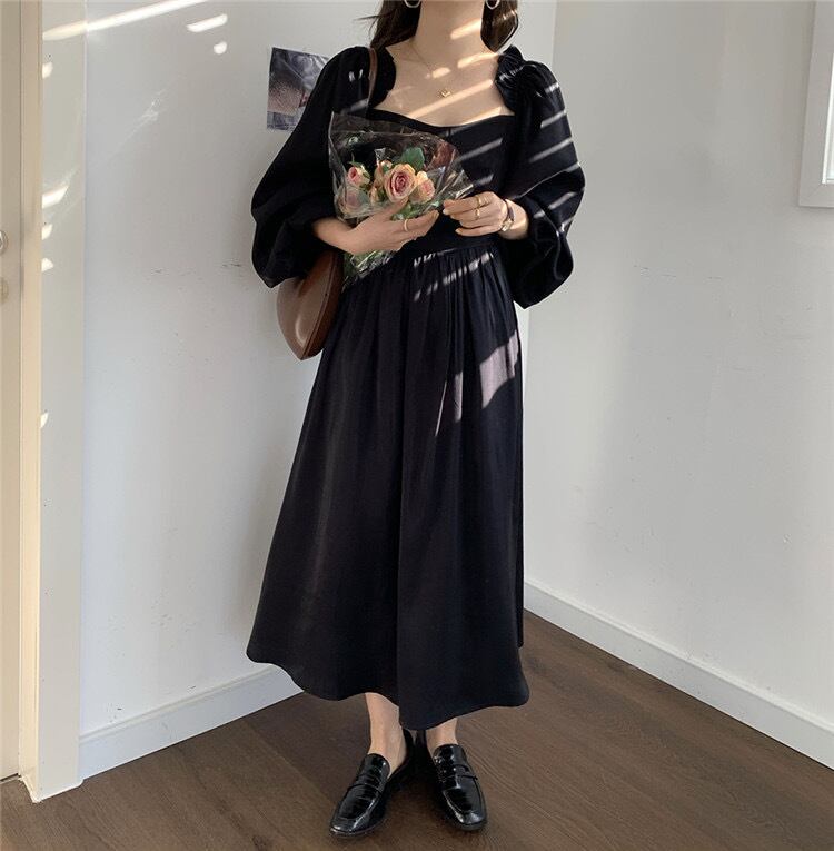 すっきり美人見え sweet系 レトロ ライトマチュア ランタンスリーブ 気質 ハイウエスト ワンビース