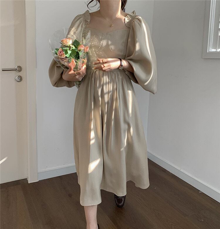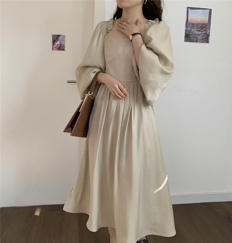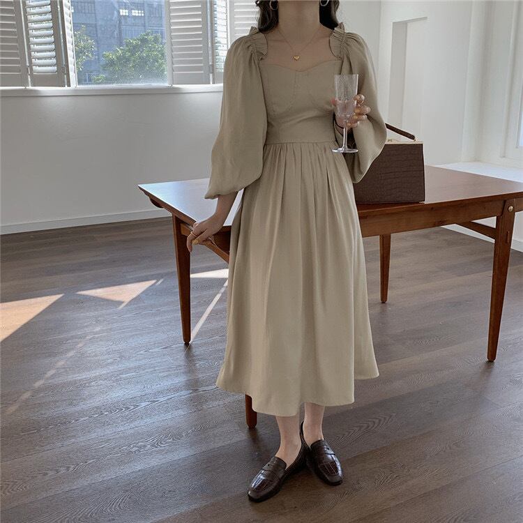 sweet系 レトロ ライトマチュア テンセル ランタンスリーブ 気質 ハイウエスト ワンビース 早春
