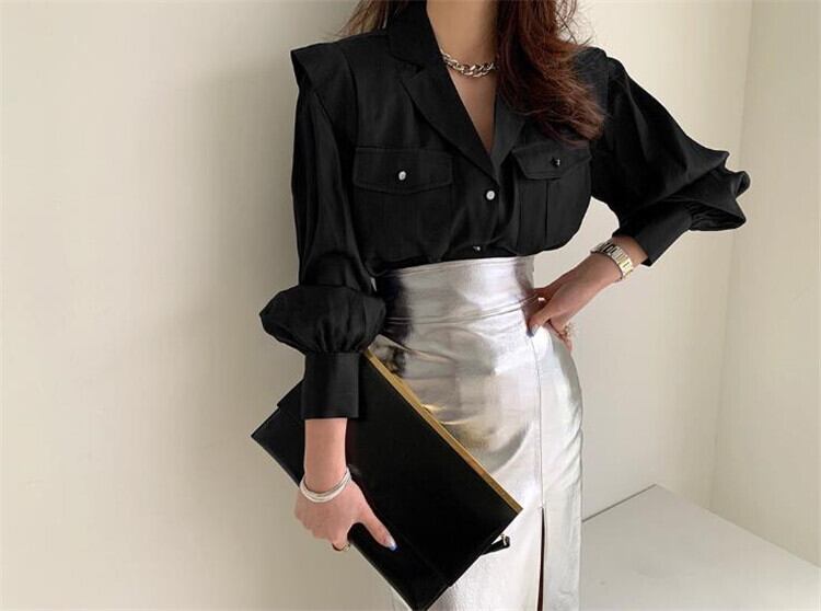 韓国ファッション 宴会場 ピュアカラー 気質 シャツ 上品映え ギャザリング
