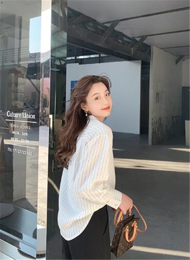 新作 ゆったりする シャツ レディース デザインセンス エレガント ラペル ストライプ トップス