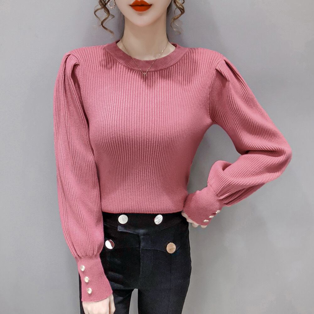 秋冬 リブニット/重ね着 トップス/無地 プルオーバー